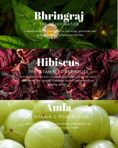 Amla (Phyllanthus Emblica):Amla is packed with vitamin C, antioxidants, and essential fatty acids. It strengthens hair follicles from the root, nourishing the scalp and promoting hair growth. Its antimicrobial properties also help in maintaining scalp health, preventing dandruff and other scalp infections.