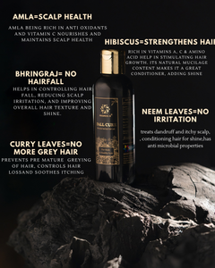 Introducing Fallcure Hair Oil, a potent blend of nature's finest ingredients meticulously crafted to revitalise your hair and restore its natural lustre and strength. Infused with Amla, renowned for its vitamin C content promoting hair growth and scalp health, along with Hibiscus, rich in antioxidants to prevent hair fall and premature greying. Aloe Vera soothes the scalp and hydrates hair follicles, while Bhringraj stimulates hair growth and strengthens roots. Methi seeds, packed with proteins and nicotinic acid, prevent hair breakage and dandruff. Neem's antibacterial properties cleanse the scalp, preventing infections and promoting healthier hair growth. Together, these ingredients synergize to create a hair oil that not only addresses hair fall but also improves overall hair texture and shine, leaving you with luscious, vibrant locks.